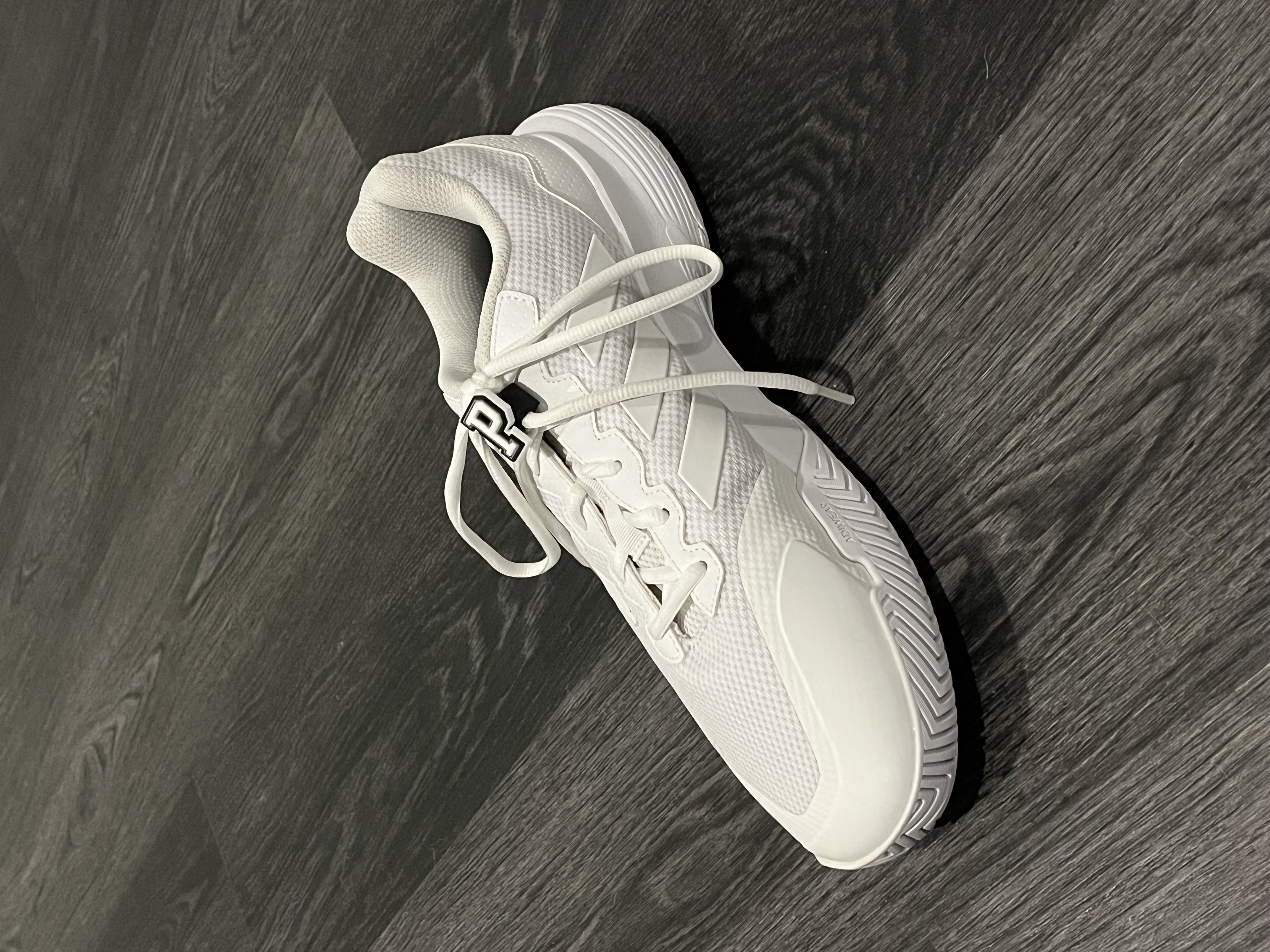 Add a personal touch to your laces with this letter P shoe charm.