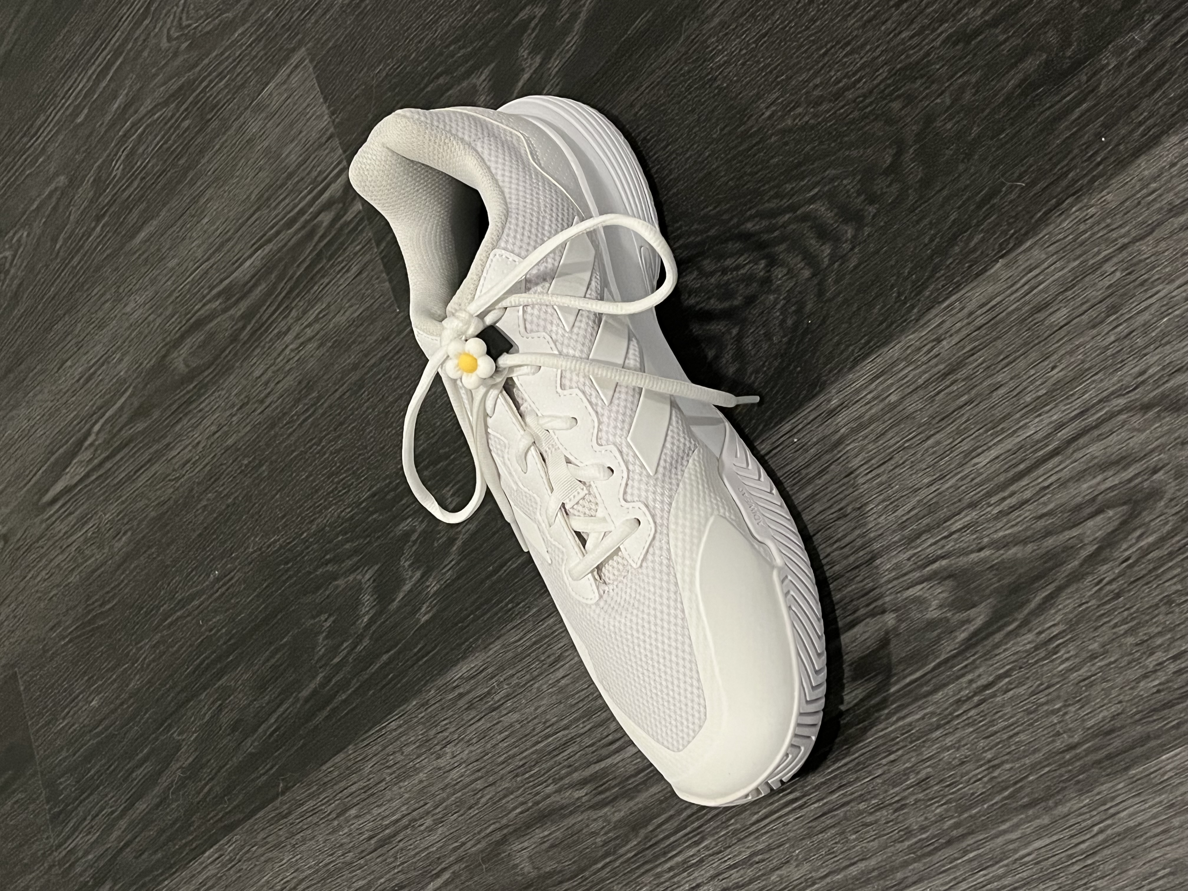 Add a breath of fresh air to your shoe game with this white resin flower shoe charm.